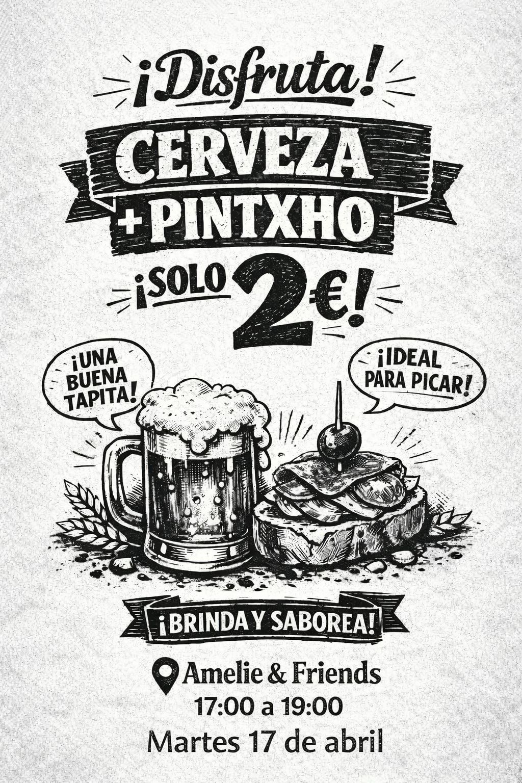 La cafetería Amelie&Friends propone una oferta exclusiva después del evento: 1 cerveza + 1 pintxho por 2€